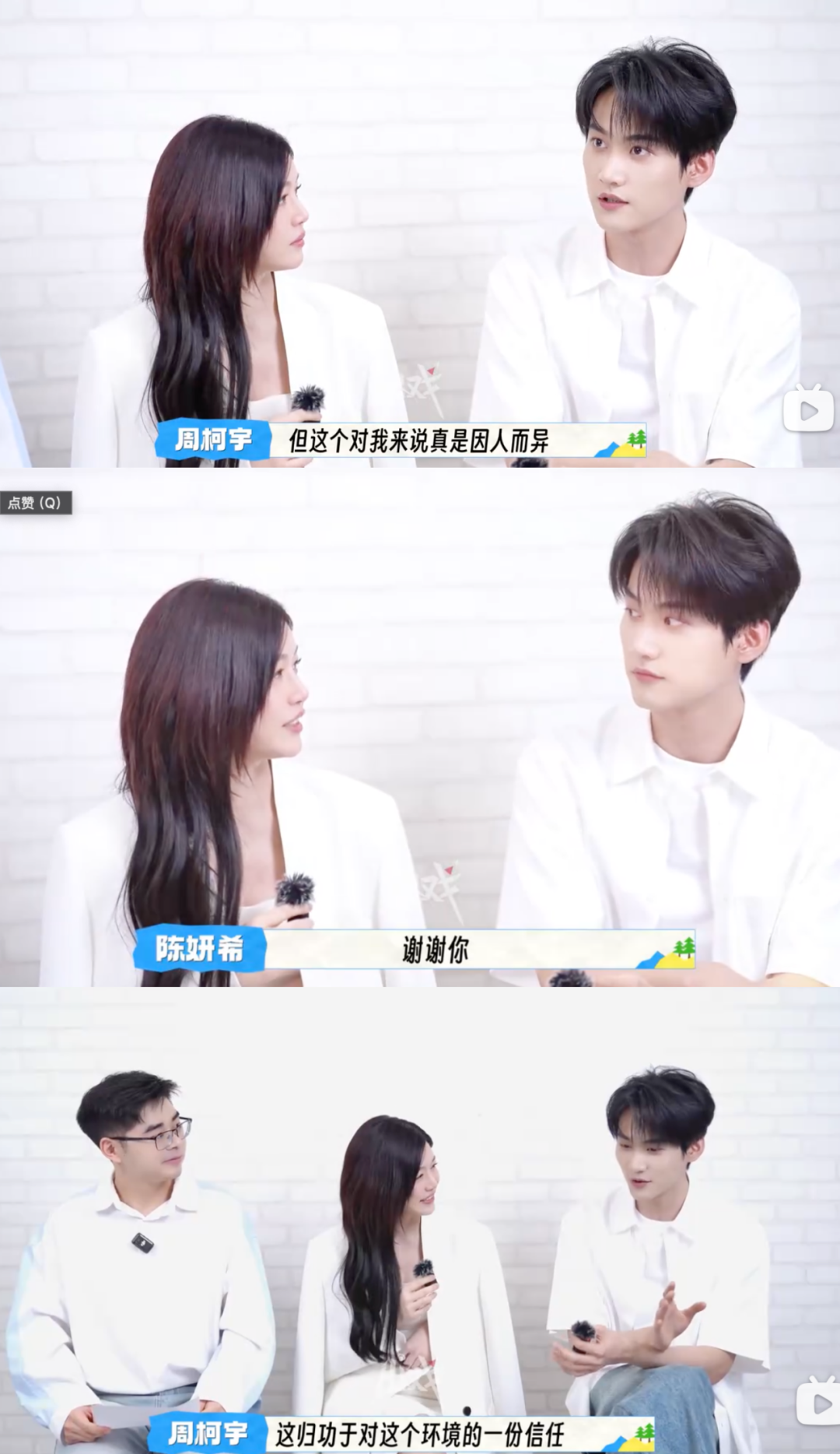 会对没拍过些许亲密戏的周柯宇加油打气(亦然很可人了)
