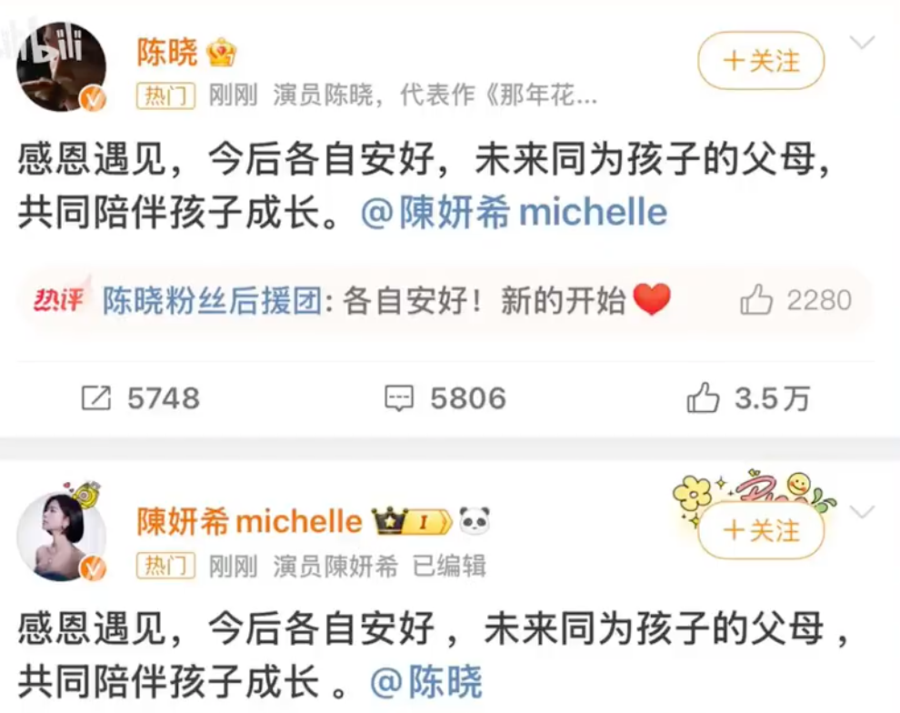不外比起门第布景,更捏马的似乎是「仳离」这个正好(本年2月18号陈妍希官宣仳离)