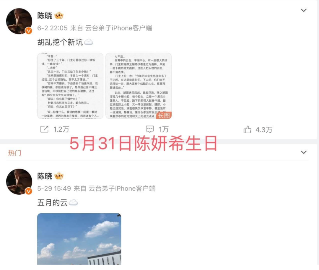 5月31号陈妍希诞辰,陈晓十年来第一次莫得送道贺